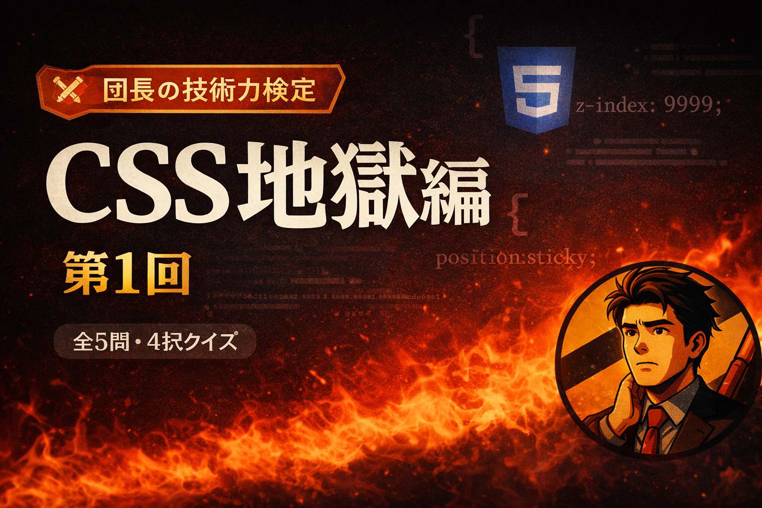 諸君。 ついに始まった。 団長の技術力検定── 記念すべき第1回のテーマは、 「CSS地獄編」だ🔥 「CSSなんて余裕でしょ」 そう思った奴、甘いぞ。 stickyが効かない。 box-sizingで幅がズレる。 z-i … 続きを読む